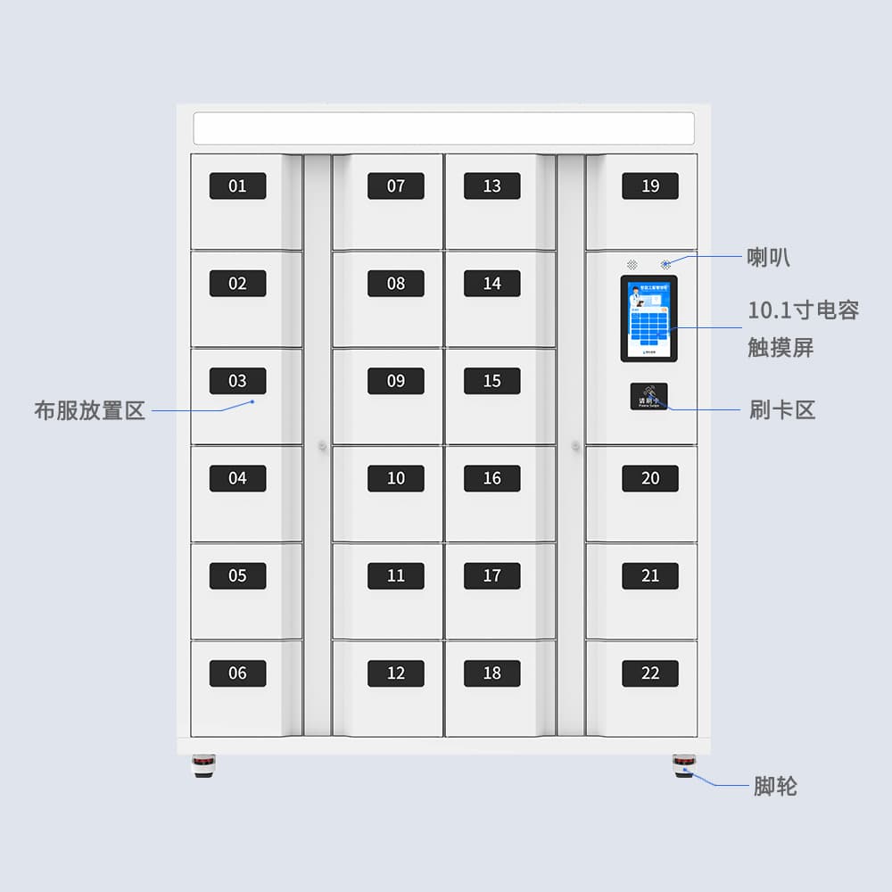 工业级RFID工服发放柜搭载毫米波RFID通道,支持多柜体物联架构。配置10.1寸工业触控屏与智能分拣算法,实现工服/布草的毫秒级动态分配。通过人员-服装-权限三维绑定,建立全流程数据链,满足医疗洁净服、防静电工装等高标管理需求。