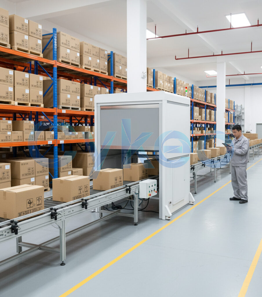 大尺寸通道可适配不同笼车或货架推车,卷帘门自动开关时间控制在3秒内,适合各种物料的快速复核。